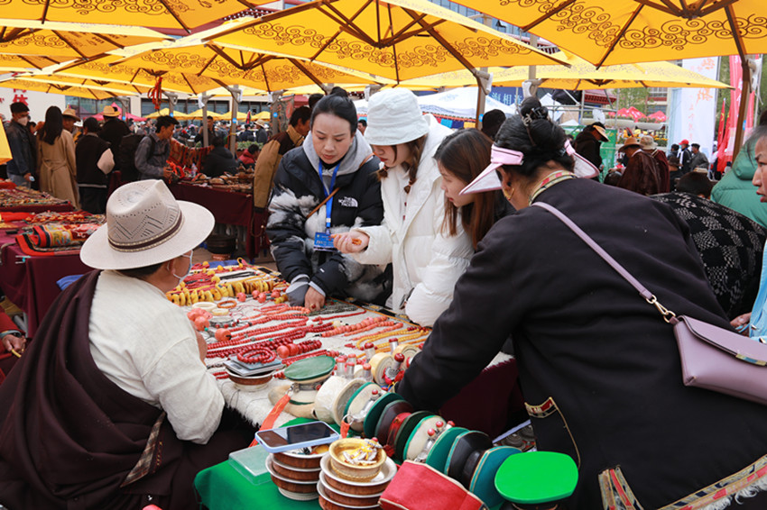 “這個(gè)銅鍋?zhàn)畹投嗌倌艹??”“這個(gè)藏刀上面的珠子是真的么?”……整整一天,羅布林廣場(chǎng)門庭若市、人聲鼎沸,詢問聲、報(bào)價(jià)聲、討價(jià)聲充斥在市集各個(gè)角落。來自甘肅省甘南州卓尼縣的商人嘎藏在古玩交易博覽活動(dòng)展覽兩日,就達(dá)成26萬元的交易額。據(jù)他介紹,從受邀參加活動(dòng)到現(xiàn)場(chǎng)展示,都有當(dāng)?shù)毓ぷ魅藛T聯(lián)系對(duì)接,不僅免費(fèi)提供展位,還有公安干警現(xiàn)場(chǎng)維護(hù)安全和秩序,更有當(dāng)?shù)卣刻焖蛠砦绮?、晚餐和飲用水,參加此次古玩交易博覽活動(dòng)很安心、舒心和放心。