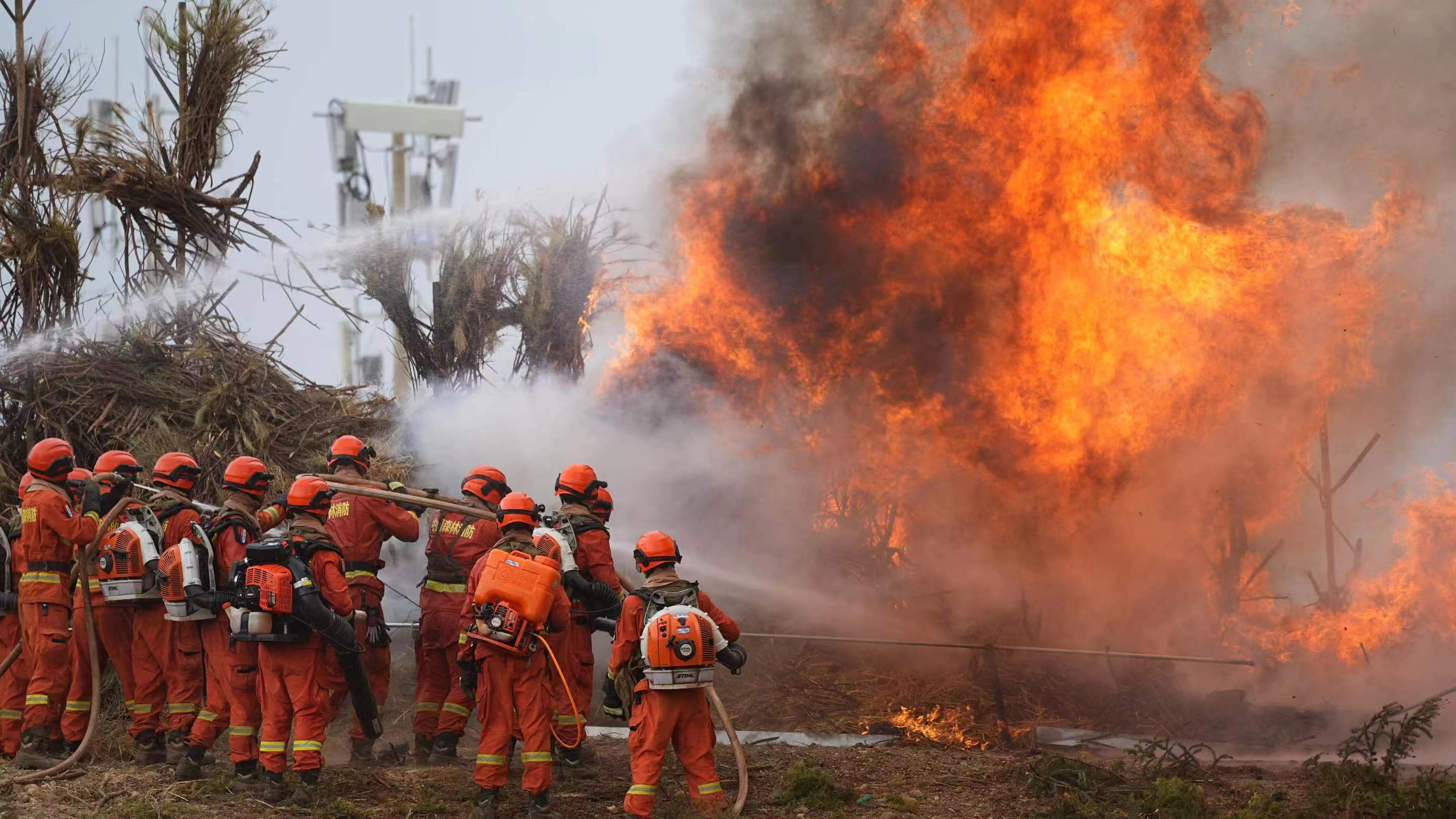 本次演習(xí)模擬的是麗江市玉龍縣發(fā)生一起7.6級地震,由此引發(fā)的連鎖反應(yīng)造成了中緬油氣管道泄漏,西電東送輸變電站線路損毀,森林火災(zāi)等多項(xiàng)災(zāi)害。其中,最為危險的莫過于急速爆燃的飛火在“高山峽谷”間肆意飛竄。