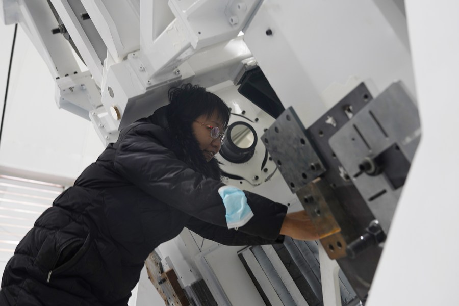 4月8日,中國科學院國家天文臺懷柔太陽觀測基地總工程師王東光在AIMS圓頂內工作。新華社記者 陳杰 攝