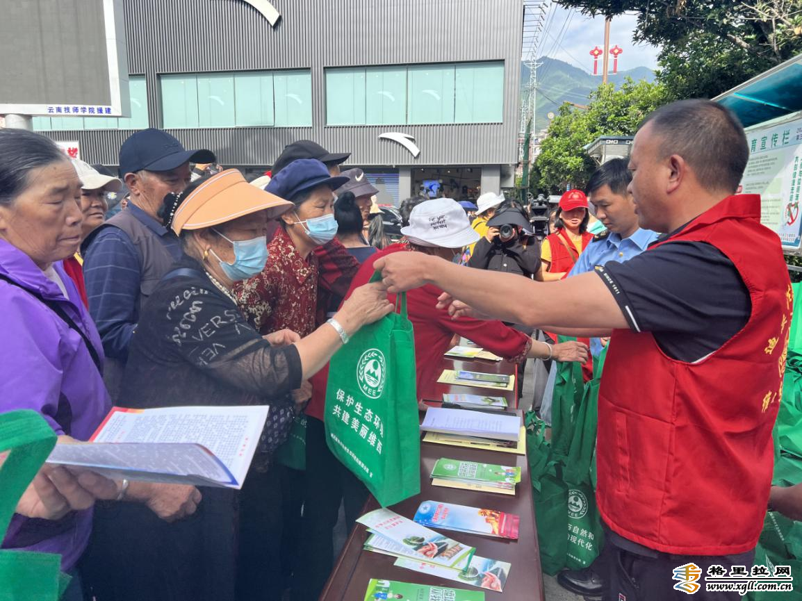 活動現(xiàn)場,通過懸掛宣傳標語、擺放宣傳展板、設置咨詢臺并發(fā)放宣傳冊、環(huán)保購物袋、水杯、雨傘宣傳品等形式,向市民普及生態(tài)環(huán)境保護法律法規(guī)、政策及綠色環(huán)保生活理念等知識,進一步弘揚生態(tài)文化、培育生態(tài)道德,推動社會公眾踐行綠色發(fā)展理念,提高全民生態(tài)環(huán)境保護意識,動員社會各界共同建設人與自然和諧共生的美麗維西。