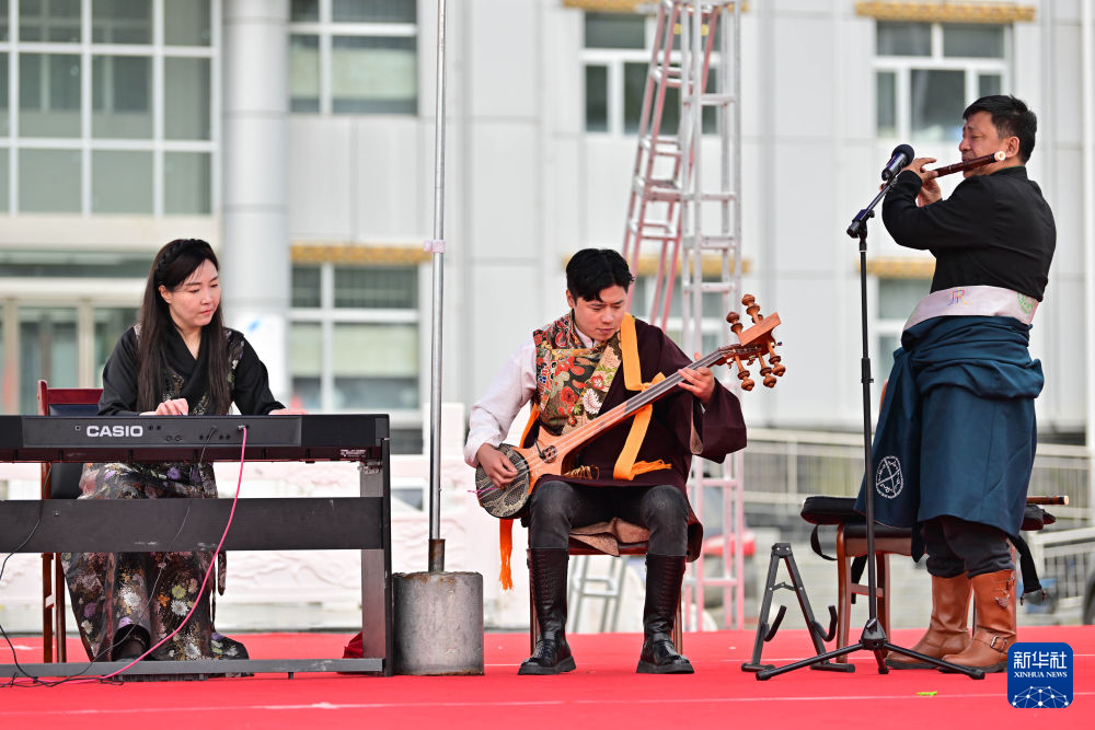 “金燦燦的光芒照亮了雪山之巔……”在藏族傳統(tǒng)樂(lè)器的伴奏下,婉轉(zhuǎn)悠揚(yáng)的歌聲仿佛穿透天際,引得路邊的群眾駐足觀看。