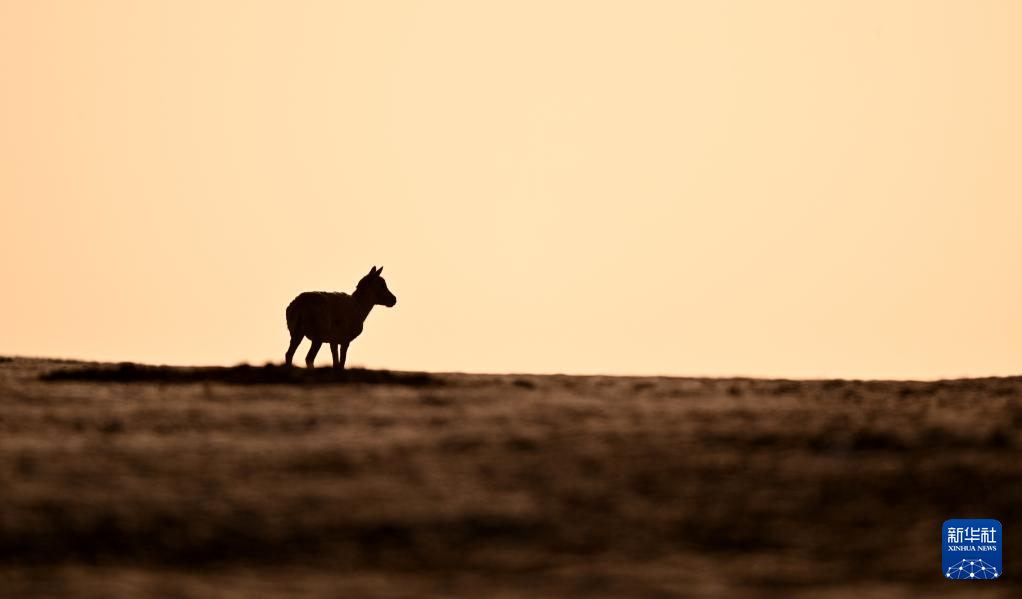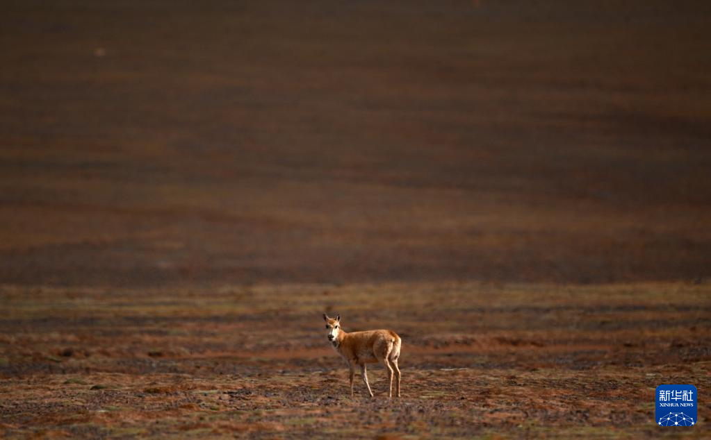 一只藏羚羊在可可西里卓乃湖區(qū)域活動(6月18日攝)。新華社記者 張宏祥 攝