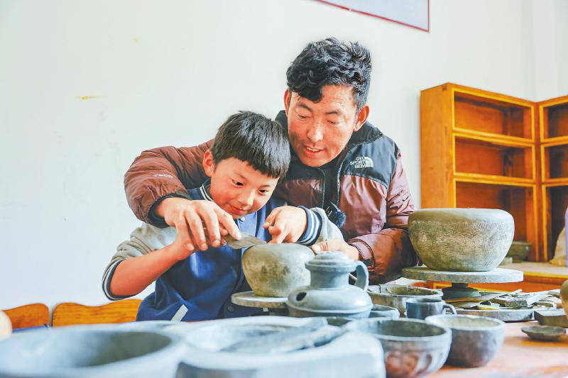 “我土生土長在這里,從父輩那里繼承手藝,不懂營銷,甚至不會漢語,做銷售很困難?!备然馃嵊貌卣Z告訴記者,“現(xiàn)在好了,我每天只用干兩件事,制作土陶,教徒弟制作土陶。”