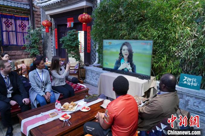 圖為參加“Z世代”畫像中國網(wǎng)絡(luò)互動活動的海外青年們觀看“民歌大觀”。主辦方供圖