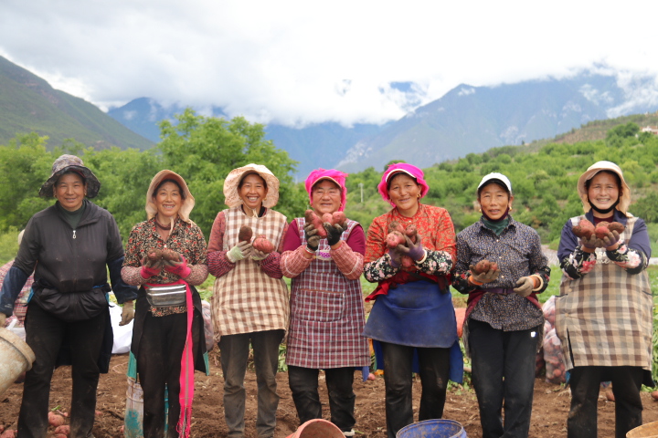 連日來,香格里拉市尼西鄉(xiāng)湯滿村千畝洋芋迎來豐收季,當(dāng)?shù)厝罕娒χ凇⒎謷R鈴薯,打包裝車,呈現(xiàn)出一派喜人的豐收景象。