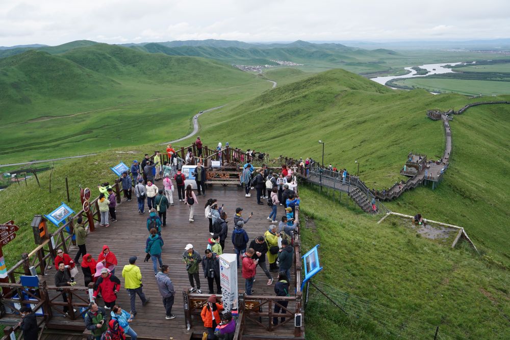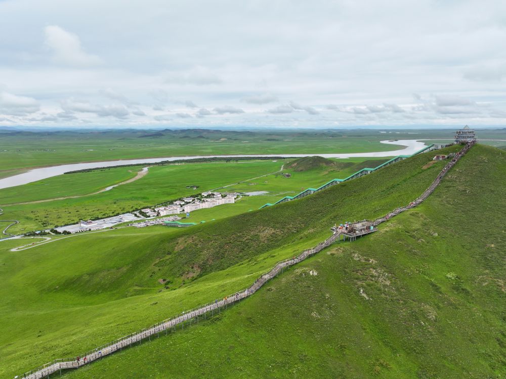 7月14日,游客游覽若爾蓋縣黃河九曲第一灣景區(qū)。新華社記者 邢拓 攝
