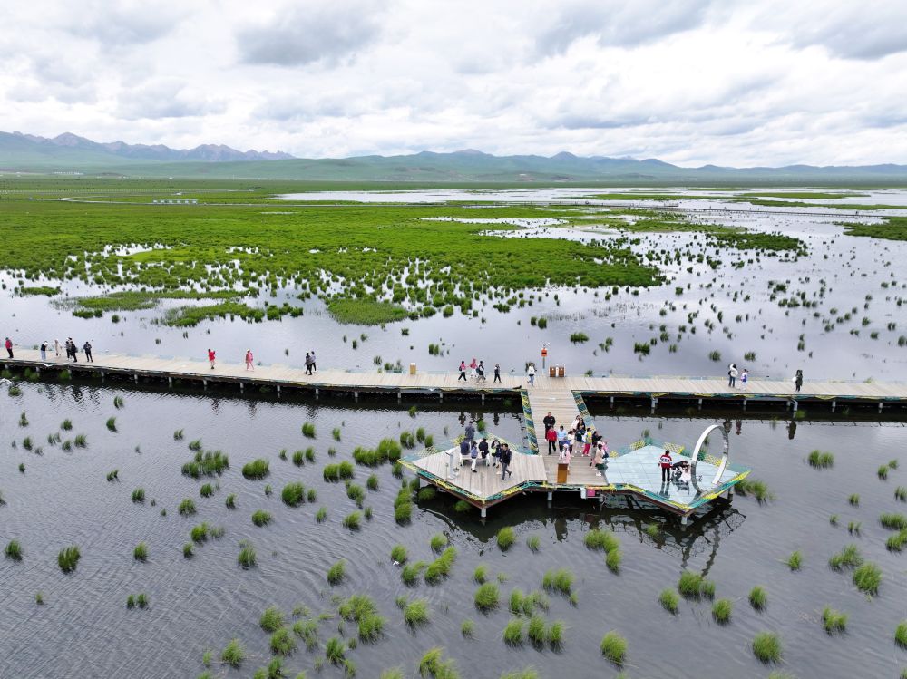 7月14日,游客游覽若爾蓋縣花湖景區(qū)。新華社記者 邢拓 攝