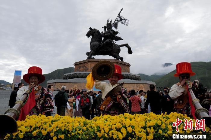 圖為玉樹市格薩爾廣場的藏族傳統(tǒng)器樂表演。陸江濤 攝