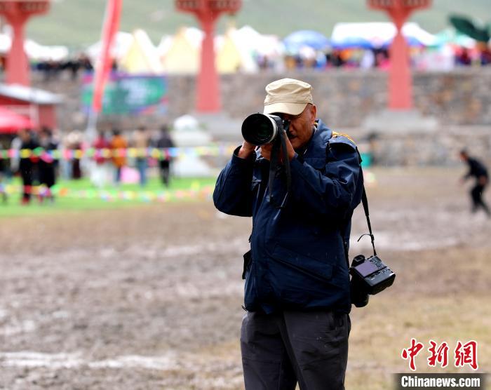 圖為西藏?cái)z影師阿旺洛桑在玉樹傳統(tǒng)賽馬會(huì)現(xiàn)場拍攝。薛蒂 攝