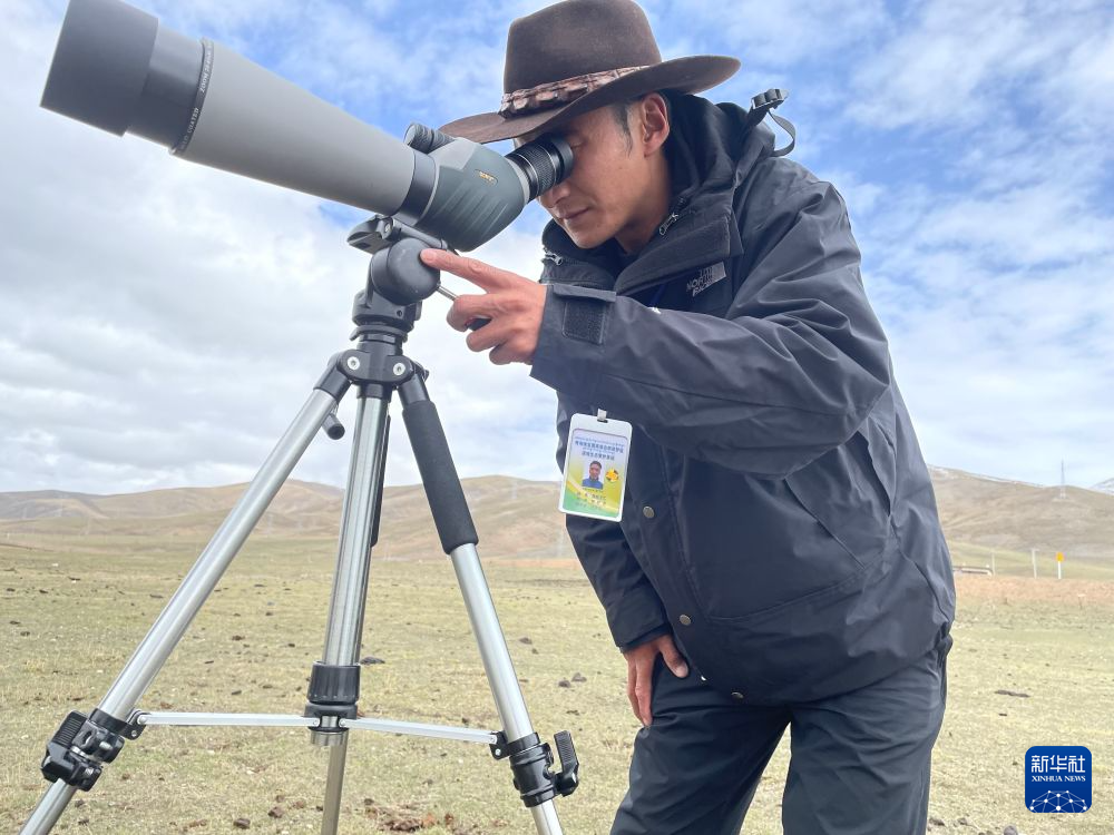 濕地生態(tài)管護(hù)員在青海隆寶國家級(jí)自然保護(hù)區(qū)觀察野生動(dòng)物。新華社記者 李琳海 攝