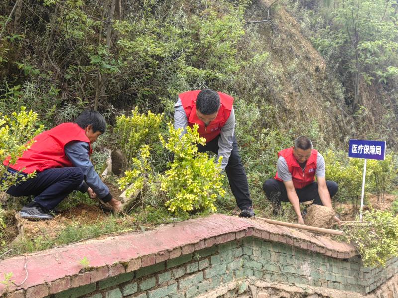 大家三五成群,有的用鋤頭鏟草,有的揮鍬挖坑,搬運(yùn)樹苗、培土澆水……大家密切配合,各環(huán)節(jié)井然有序。