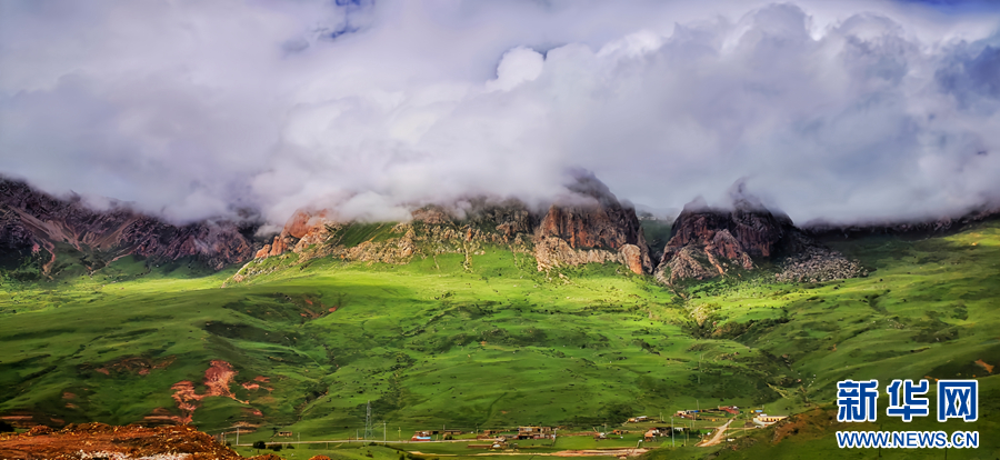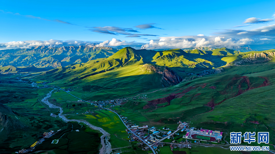 時(shí)值盛夏,青海省玉樹(shù)藏族自治州景色怡人,群山和草原在藍(lán)天白云的映襯下構(gòu)成壯美的畫卷。