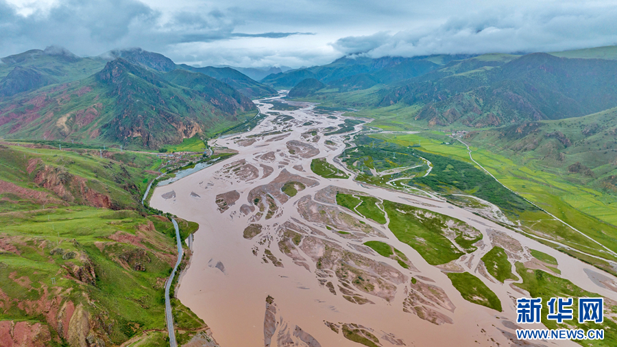 圖為在青海省玉樹(shù)藏族自治州囊謙縣境內(nèi)拍攝的夏日風(fēng)光(無(wú)人機(jī)照片)。新華網(wǎng) 宋忠勇 攝