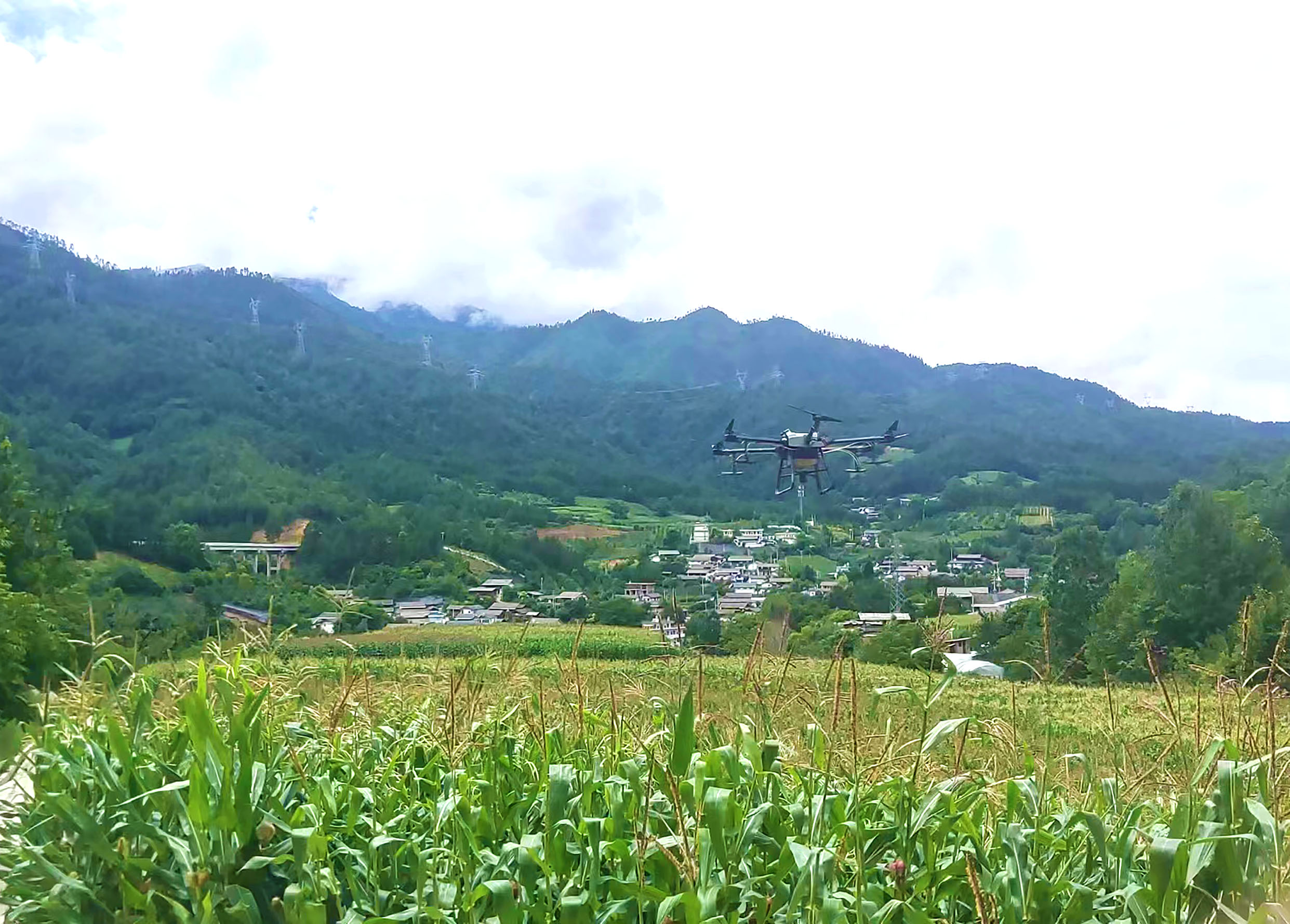 圖為植保無(wú)人機(jī)正在維西縣永春鄉(xiāng)慶福村進(jìn)行玉米病蟲(chóng)害飛防作業(yè)。