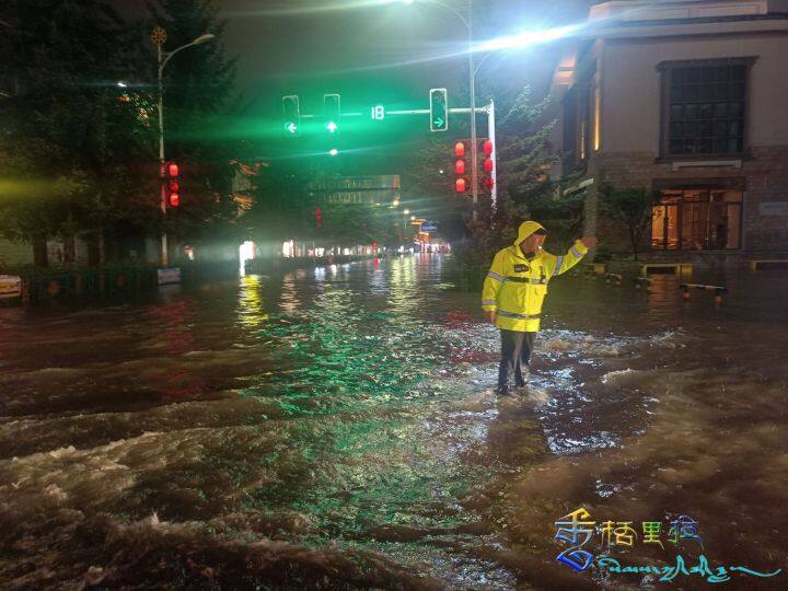 8月6日,受強(qiáng)降雨影響,香格里拉市城區(qū)部分路段出現(xiàn)不同程度的內(nèi)澇和雨水倒灌現(xiàn)象。香格里拉市城區(qū)陽(yáng)塘路、壇城北路、池慈卡街等道路嚴(yán)重積水,出行受阻,隱患增多。為保障群眾安全出行,香格里拉市公安局直屬城市交警大隊(duì)第一時(shí)間啟動(dòng)防汛應(yīng)急預(yù)案,全力開展交通疏導(dǎo)、隱患排查,通宵達(dá)旦排水排澇、搶險(xiǎn)清障、救助群眾,扛起保障道路安全暢通的重?fù)?dān),為市民雨夜出行撐起“安全傘”。