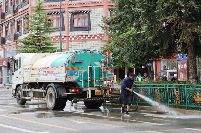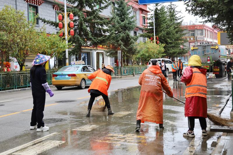 為盡快恢復(fù)城區(qū)潔凈容貌,香格里拉市和祥環(huán)??萍加邢挢?zé)任公司立即組織環(huán)衛(wèi)工人30名,抽調(diào)高壓水車2輛、掃地車4輛,積極開展道路清淤工作,同時(shí)對下水道水口周邊的樹枝、雜物等進(jìn)行清理清運(yùn)。經(jīng)過近五小時(shí)的連續(xù)作業(yè),成功恢復(fù)道路暢通整潔。