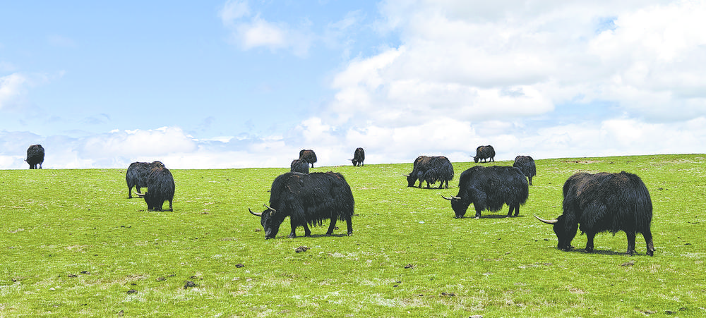 草原上愜意的牦牛。