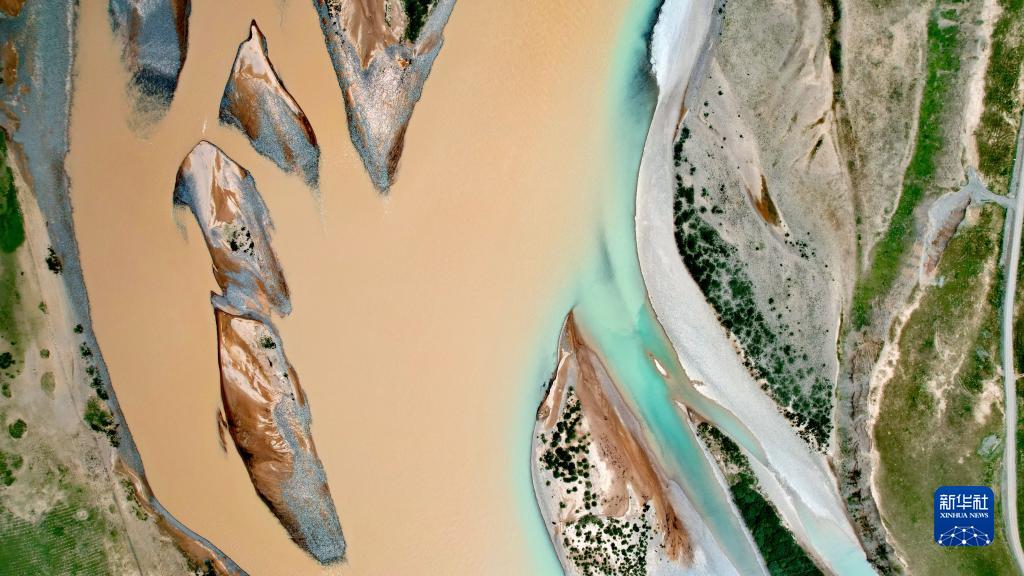 當(dāng)曲支流布曲與尕爾曲會(huì)合處(7月27日攝,無人機(jī)照片)。新華社記者 劉詩平 攝