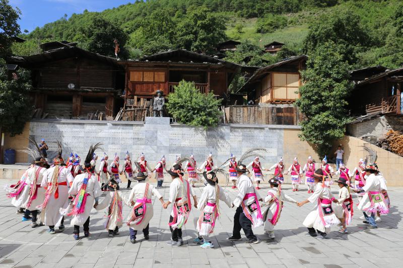 維西縣葉枝鎮(zhèn)同樂村村民身著盛裝歌舞阿尺目刮