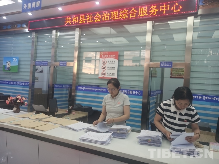 圖為青海省海南藏族自治州共和縣社會治理綜合服務(wù)中心工作人員為群眾進行調(diào)解