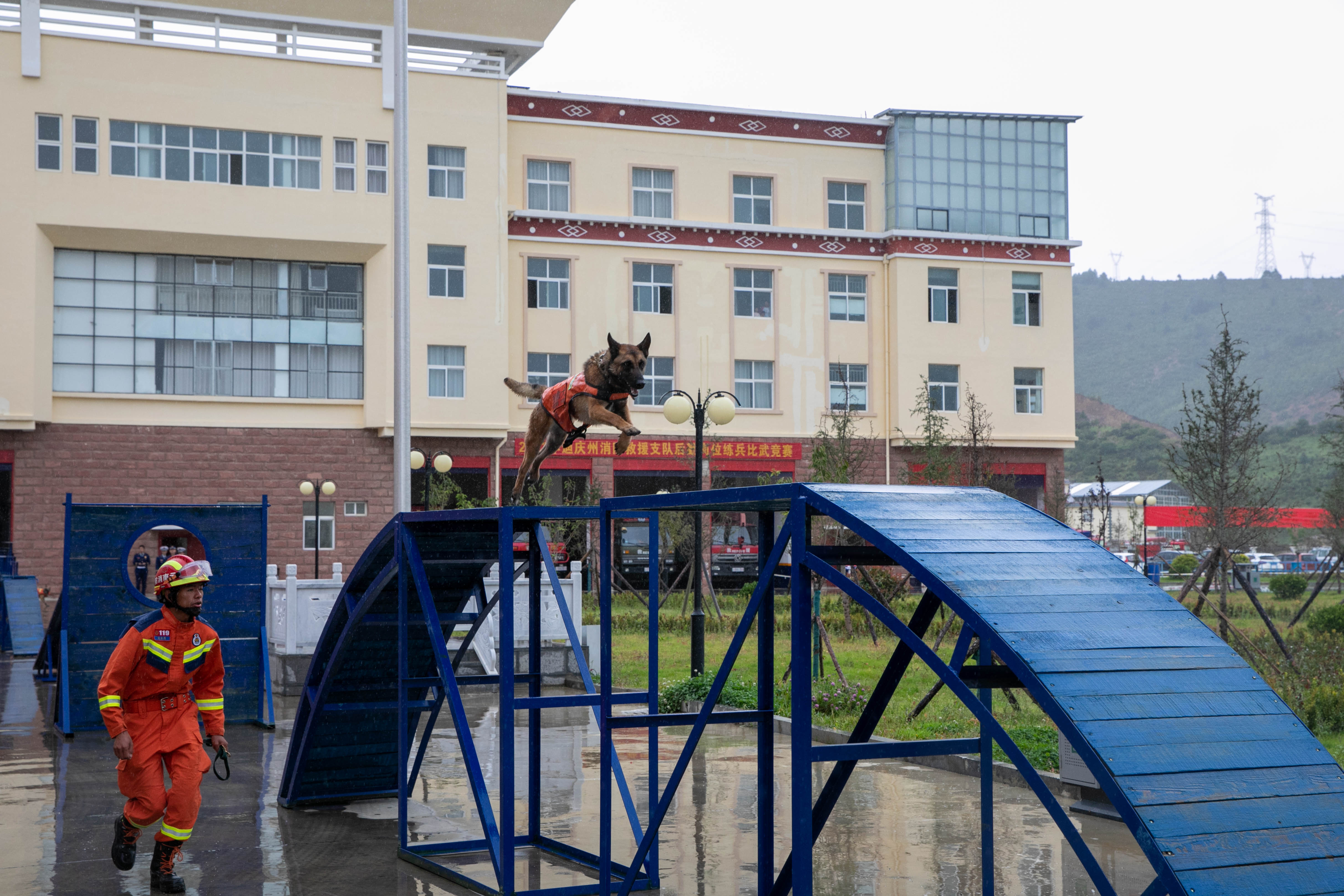 本次競賽為期2天,設(shè)置了理論考試和技能操作2大項目。其中,技能操作包括滅火戰(zhàn)斗員、應(yīng)急救援員、專職消防員、搜救犬訓(xùn)導(dǎo)員、消防裝備維護(hù)員、消防設(shè)施操作員、消防通信員等7個競賽科目,來自全州5支代表隊的115名參賽選手同場競技、一展風(fēng)采。