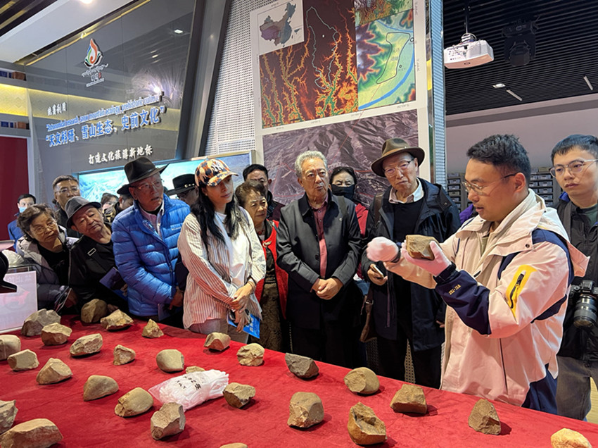 來自省內(nèi)外學(xué)術(shù)界和演藝界的甘孜名人戴上手套近距離觸摸石器物品所傳達的歷史溫度。