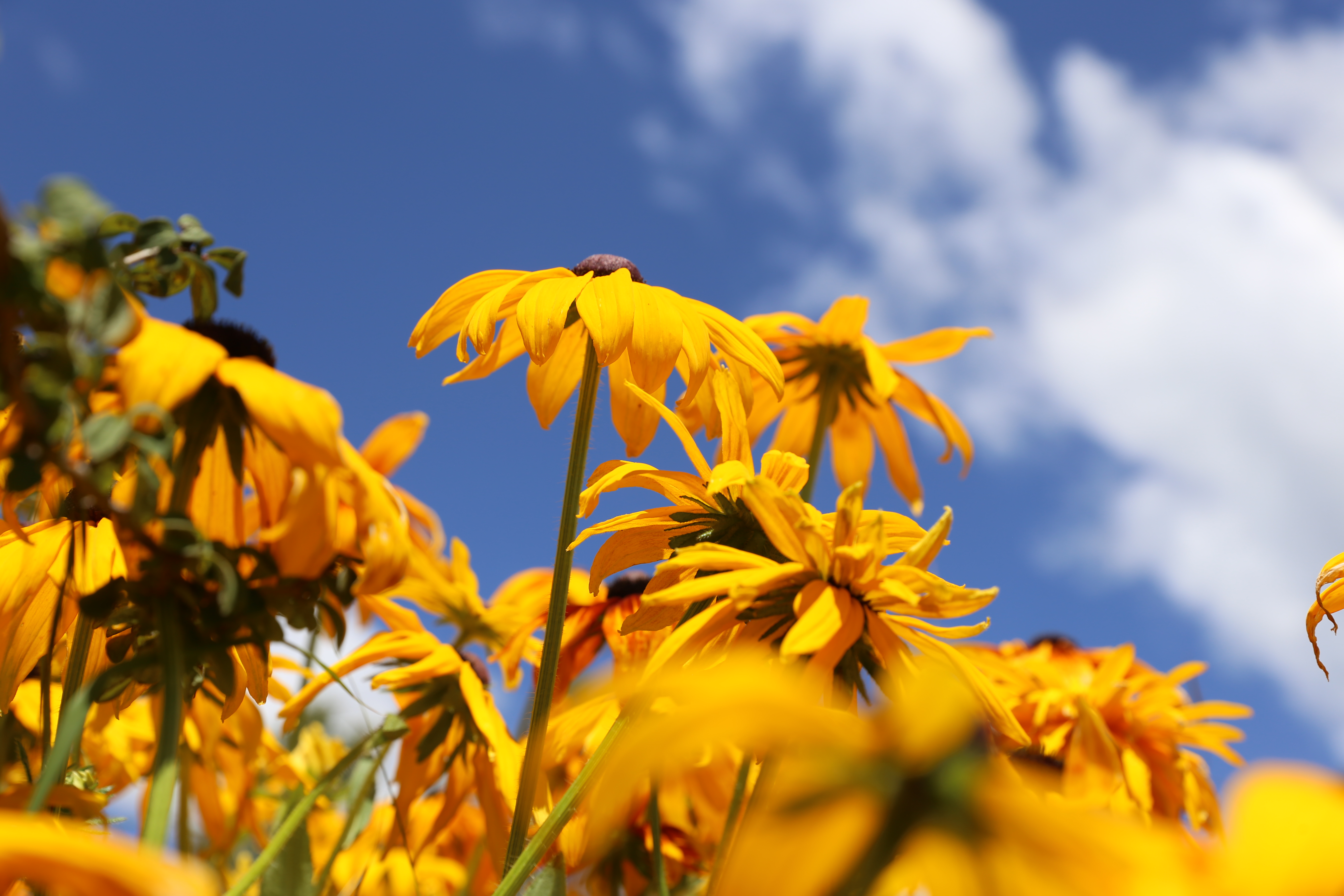 田間萬壽菊、百日菊、黑心菊、向日葵等簇?fù)硎⒎?,萬里晴空下,朵朵菊花在秋風(fēng)中搖曳生姿,蜜蜂飛舞、蝴蝶翩躚,繪出了一幅色彩繽紛的秋日畫卷,令人賞心悅目。