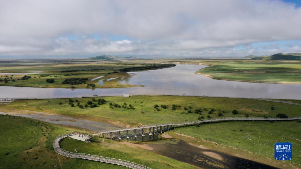 這是8月22日在四川省阿壩藏族羌族自治州若爾蓋縣唐克鎮(zhèn)拍攝的黃河九曲第一灣景色(無人機(jī)照片)。新華社記者 王乙杰 攝