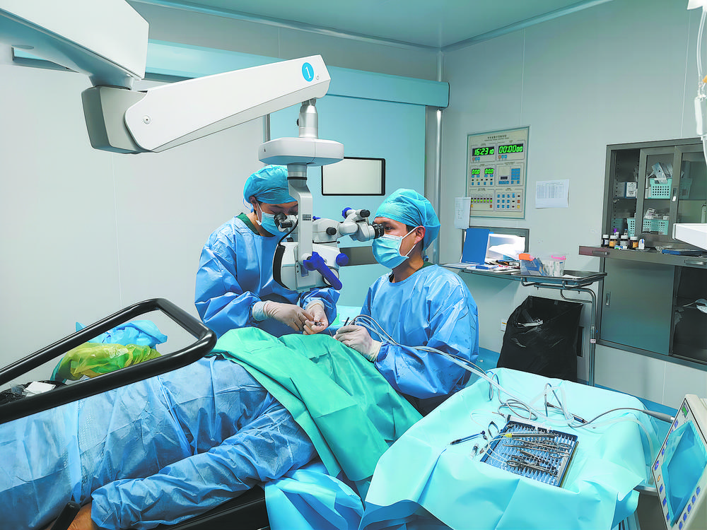 魯青眼科醫(yī)院援青醫(yī)生在進行白內障手術。