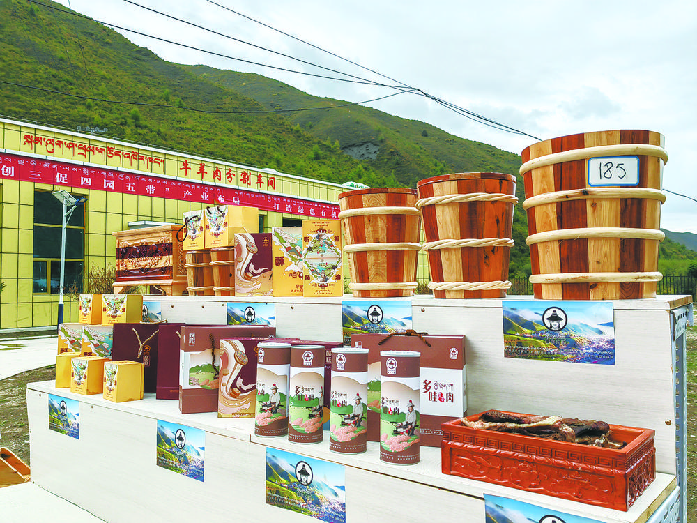 多哇鎮(zhèn)有機(jī)畜產(chǎn)品輸出基地內(nèi)豐富的農(nóng)畜產(chǎn)品。牛玉嬌 攝