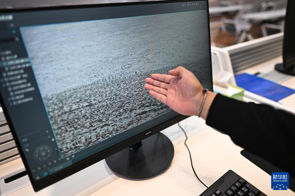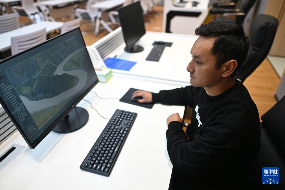 9月22日,玉樹州生態(tài)環(huán)境局宣教信息科工作人員曲達(dá)朋措展示長江源流域當(dāng)曲的實(shí)時(shí)監(jiān)控畫面。新華社記者 張宏祥 攝