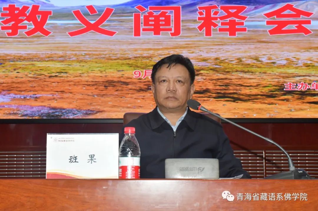 此次會議由青海省藏語系佛學(xué)院、三江源生態(tài)保護基金會、青海省藏傳佛教研究中心聯(lián)合舉辦。省委常委、省委統(tǒng)戰(zhàn)部部長班果出席并講話,第十三屆全國人大民族委員會副主任、中央民族大學(xué)教授丹珠昂奔,三江源生態(tài)保護基金會理事長鄧本太,中國藏學(xué)研究中心原副總干事洛桑靈智多杰,省政協(xié)副主席、省藏語系佛學(xué)院院長仁青安杰等領(lǐng)導(dǎo)出席。