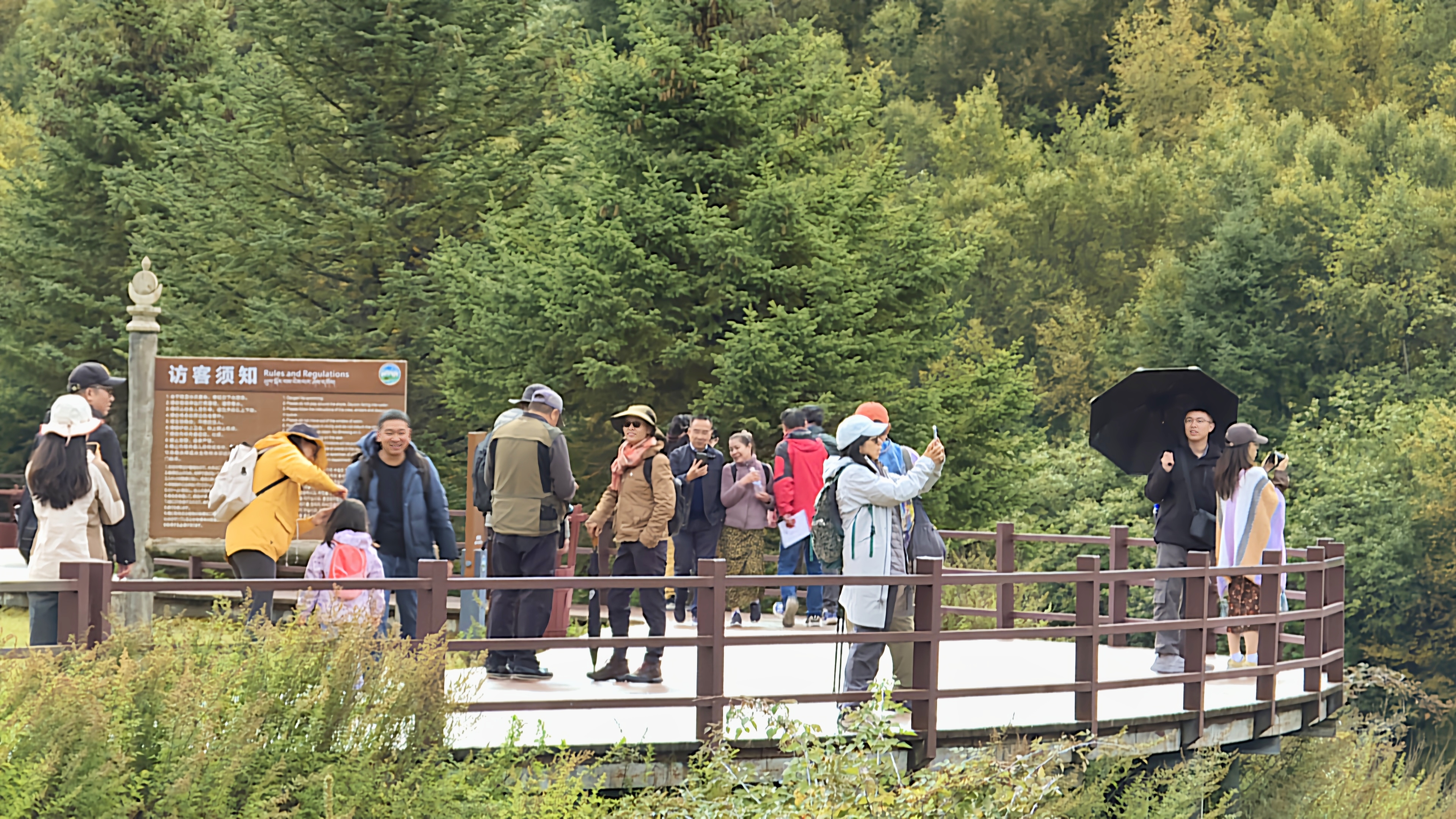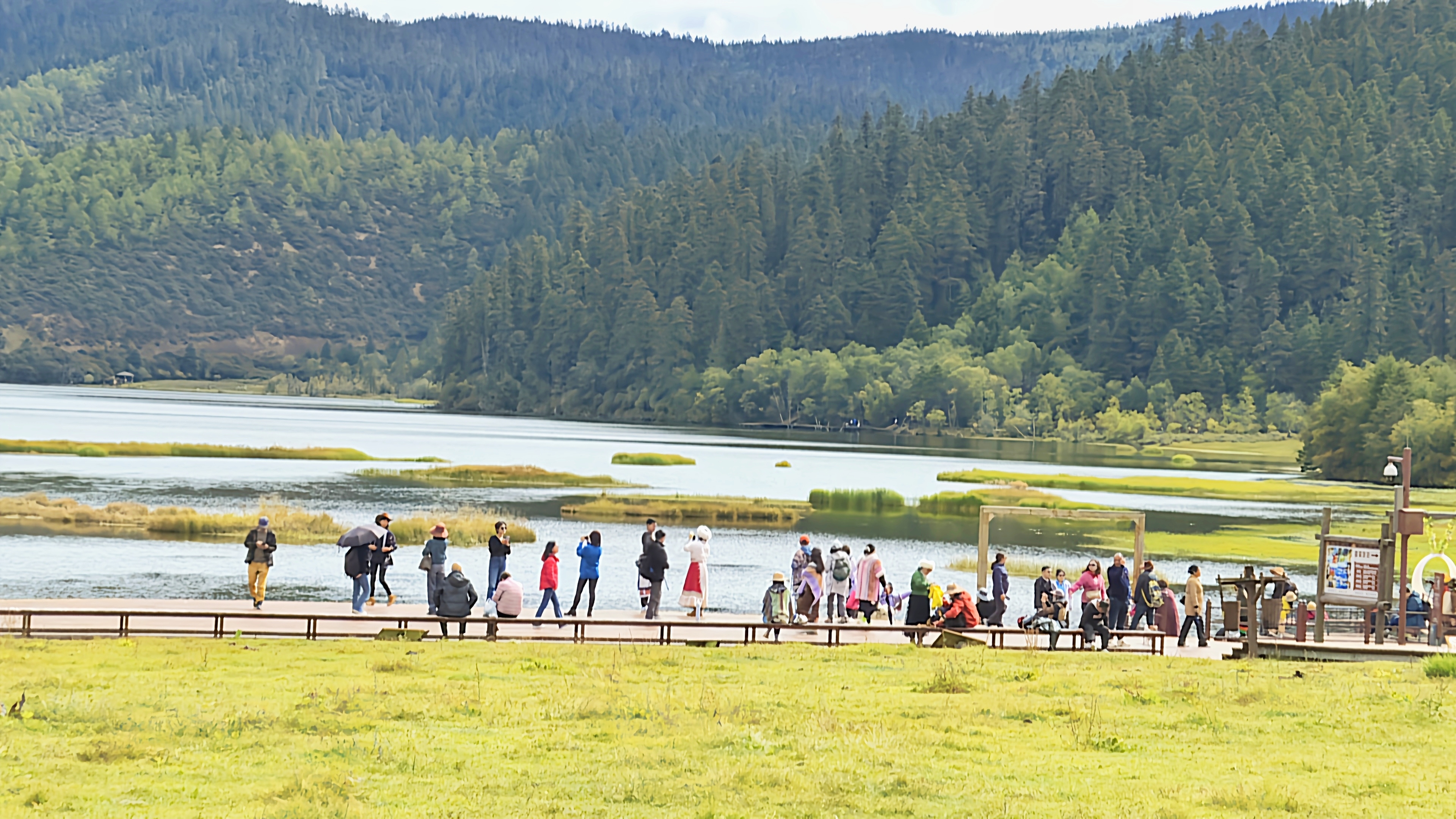 秋日的普達(dá)措國(guó)家公園層林盡染、色彩斑斕,高山草甸、原始森林與湖泊濕地構(gòu)成了一幅幅美麗的畫卷,屬都湖棧道上人群熙熙攘攘。“我是第一次來香格里拉旅游,香格里拉給我的感覺就是,這里的生態(tài)環(huán)境保護(hù)得很好,綠水青山,很值得來游玩?!庇慰退闻勘硎?。