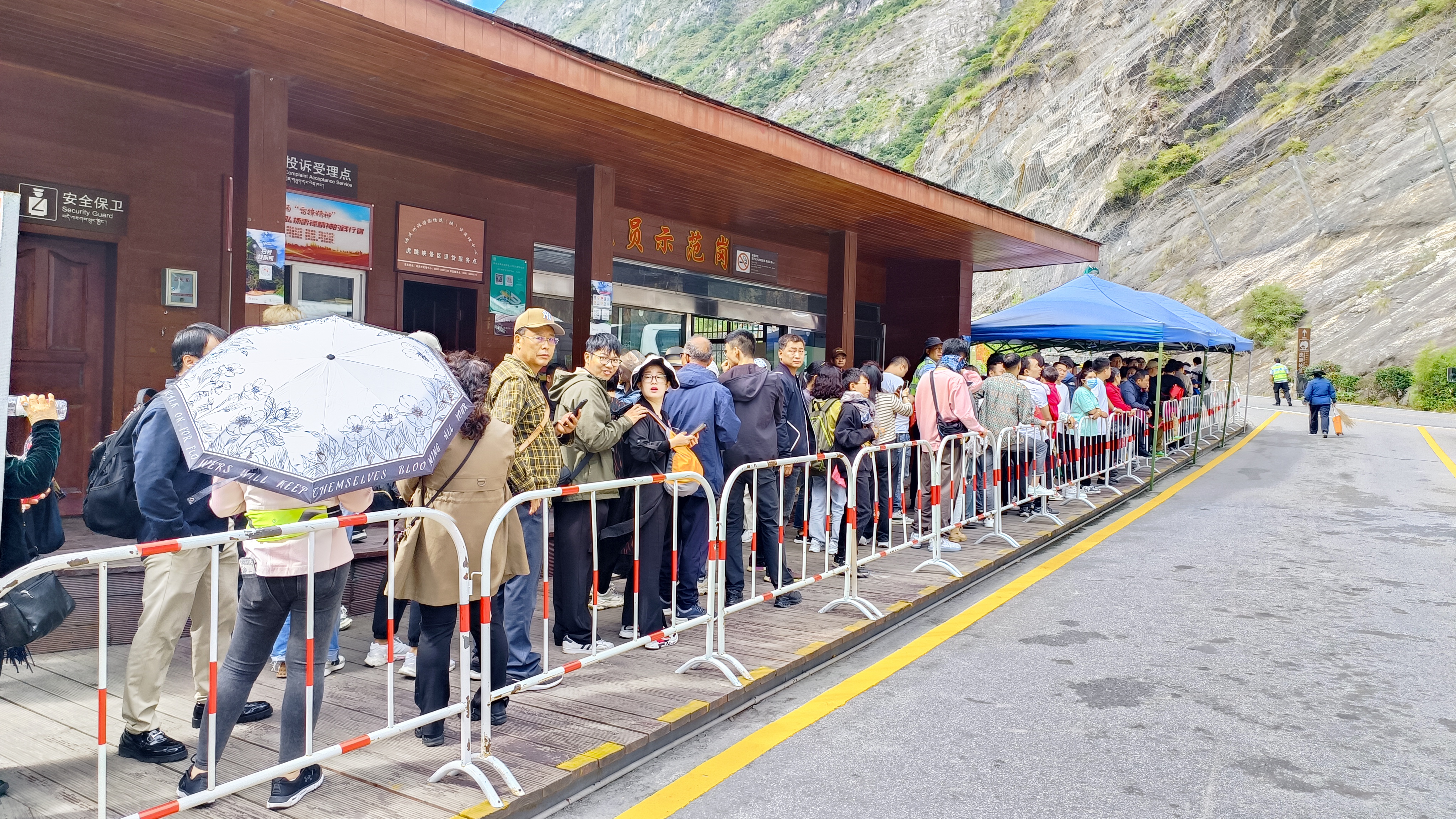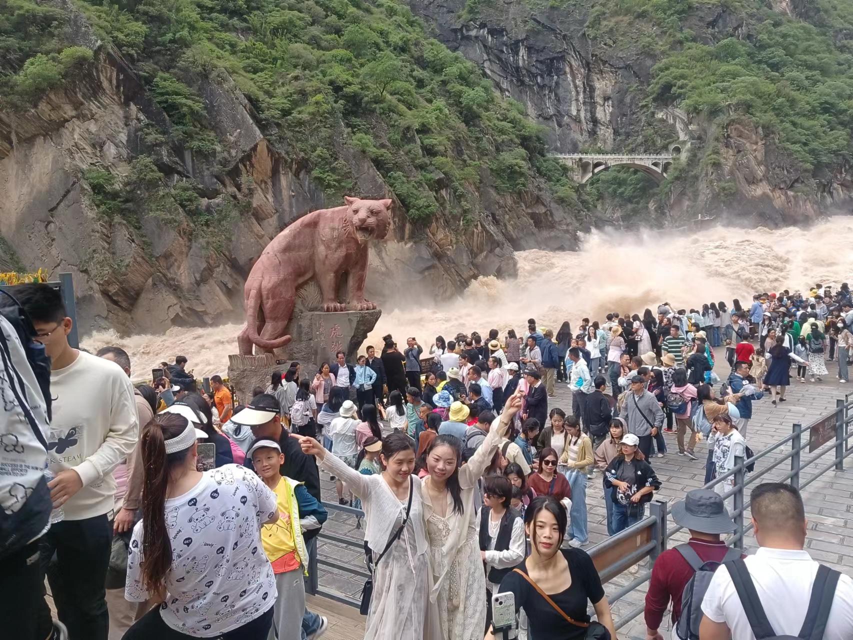 日前,虎跳峽景區(qū)游人爆滿,各項(xiàng)旅游接待指標(biāo)全面提升。“目前游客人數(shù)還在持續(xù)攀升,預(yù)計(jì)國(guó)慶節(jié)中期到達(dá)頂峰?!本皡^(qū)工作人員介紹道。假期前三天景區(qū)已接待游客3.11萬人。