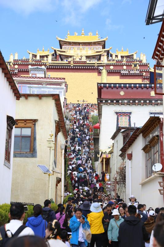 松贊林景區(qū)副總經(jīng)理孫建紅介紹,為做好服務(wù)保障工作,景區(qū)公司全體員工堅(jiān)守崗位,從總經(jīng)辦開始下沉一線,實(shí)行“網(wǎng)格化管理”負(fù)責(zé)制,景區(qū)增設(shè)了臨時(shí)售票點(diǎn),實(shí)施分流、錯(cuò)峰措施,同時(shí)取消了午休時(shí)間,為員工提供工作午餐,更好服務(wù)游客。
