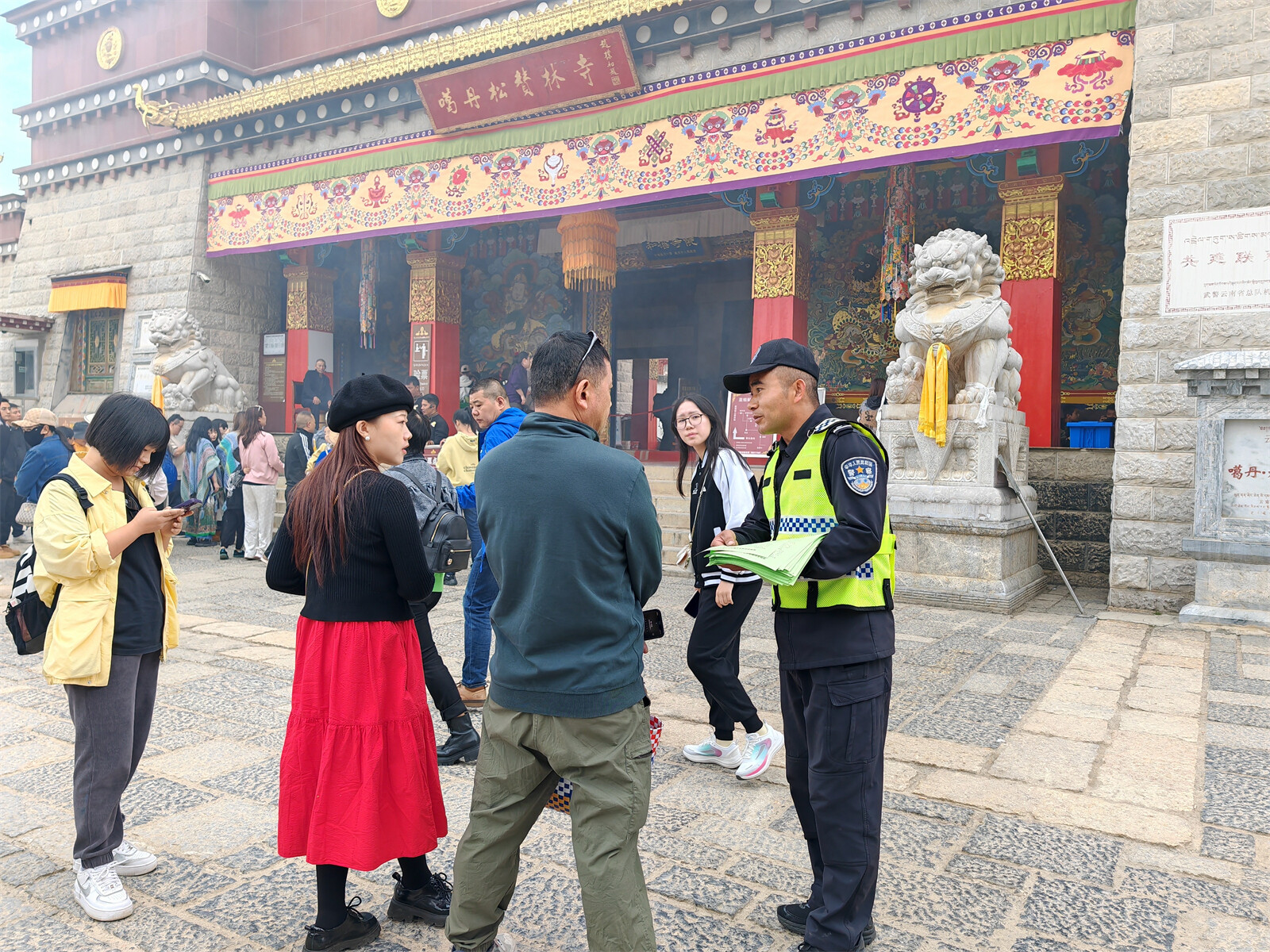 10月1日起,香格里拉市公安局直屬城市交警大隊組織民輔警走進(jìn)松贊林寺景區(qū)、納帕海景區(qū)開展交通安全宣傳活動,加強景點路面管控,確保國慶期間景區(qū)道路安全、有序、暢通。