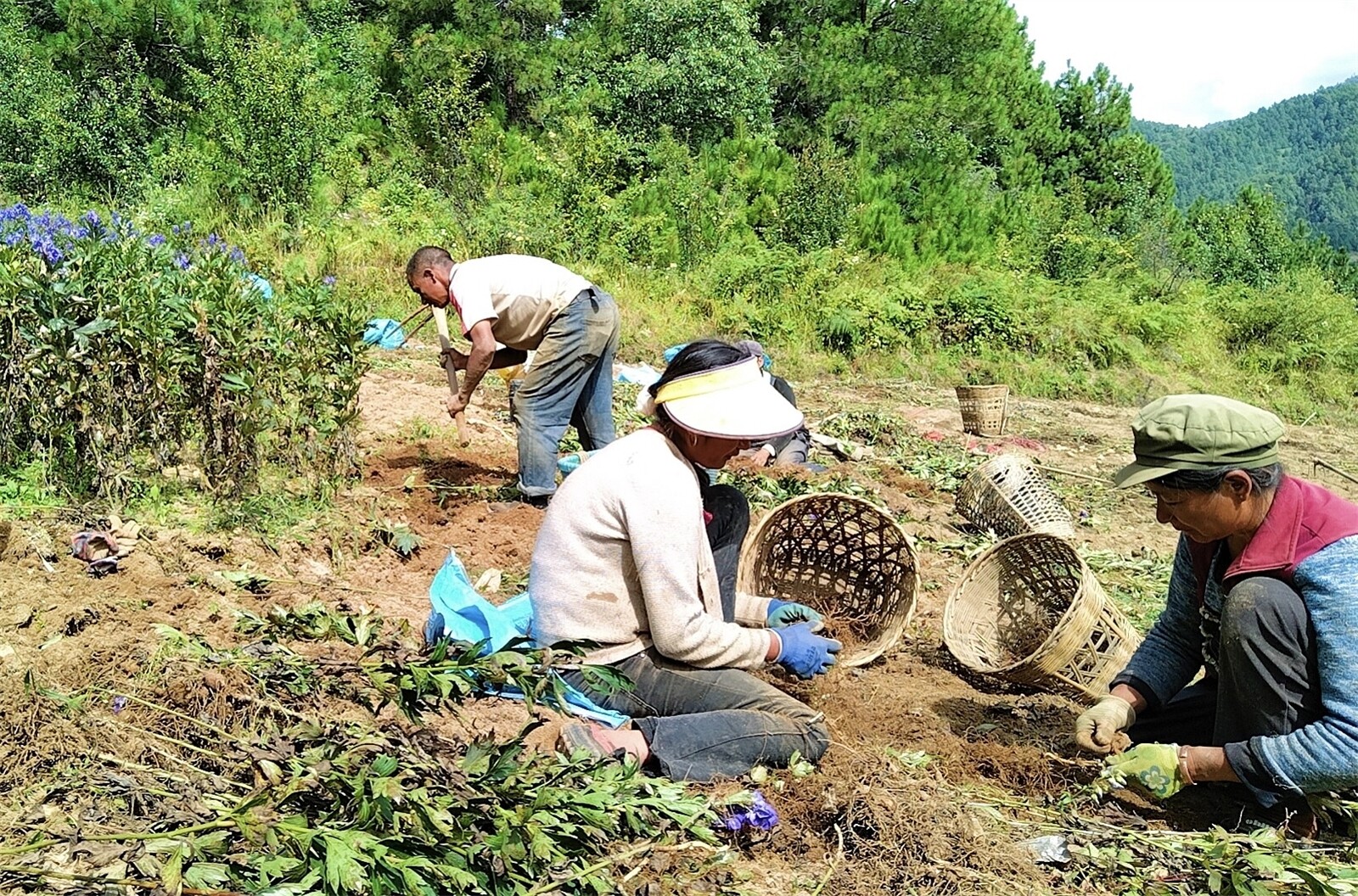 近日,維西傈僳族自治縣攀天閣鄉(xiāng)美洛村400余畝附子喜獲豐收。田間地頭,村民們?nèi)宄扇?,通力協(xié)作,將一顆顆采挖出來(lái)的附子收集成籮,集裝成袋,看著眼前的一袋袋附子,村民們都樂(lè)得合不攏嘴?!敖衲旮阶赢a(chǎn)量很高呢,按照去年的市場(chǎng)價(jià)今年一畝最多可有2萬(wàn)收入”美洛村副主任和麗新說(shuō)。