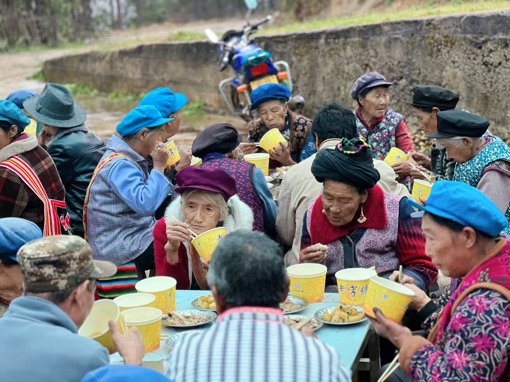 活動當天,村里的瓦器器舞蹈表演隊為老人們表演了精彩的節(jié)目。老人們圍桌而坐,不時地舉杯慶賀屬于他們的節(jié)日,享用著精心烹制的美味佳肴,幸福的笑容始終洋溢在老人們的臉上。活動現(xiàn)場一片歡聲笑語,氣氛溫馨和諧。