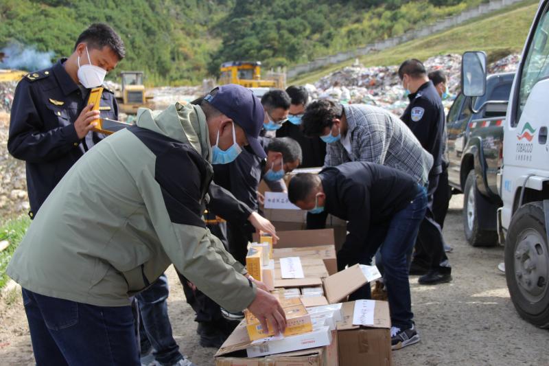 10月13日上午,迪慶州煙草專賣局聯(lián)合州市場監(jiān)督管理局、州公安局、州郵政管理局等相關(guān)部門,在香格里拉市垃圾處理廠舉行了假煙公開銷毀活動(dòng)。