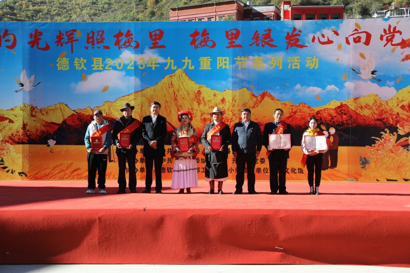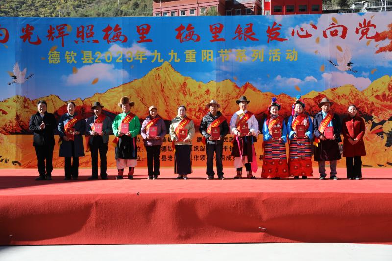活動中,德欽縣縣委、政府負責人分別為2023年德欽縣“黨的光輝照梅里 梅里銀發(fā)心向黨”重陽節(jié)系列慶?;顒又罗o,并通報了德欽縣2023年經(jīng)濟社會發(fā)展情況。