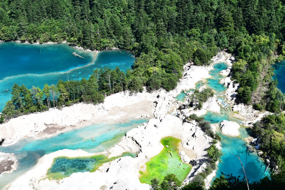 今的火花海,其修復(fù)方案得到聯(lián)合國教科文組織肯定支持,榮獲四川省“科技進(jìn)步一等獎(jiǎng)”。圖據(jù)九寨溝管理局