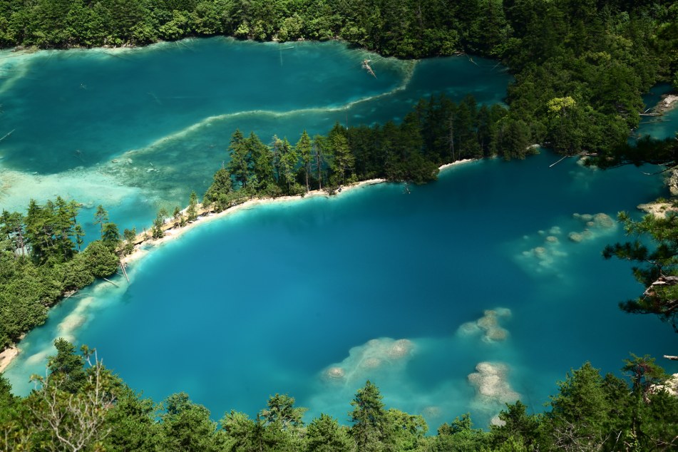 宛如翡翠鑲嵌于山林間 四川九寨溝縣神仙池風(fēng)景如畫