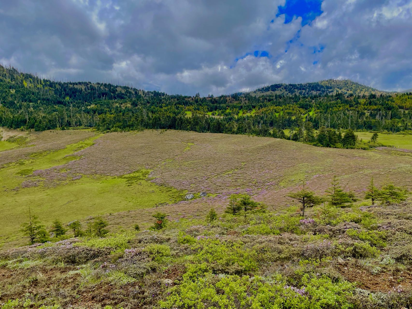 千湖山藏語(yǔ)稱(chēng)“拉姆冬措”,意為神女千湖或仙女千湖,以三碧海、大黑海為中心,向四周散開(kāi)。千湖山上共有大大小小近300個(gè)高山湖泊,堪稱(chēng)云南高山湖泊最集中的地方。千湖山的湖有的圓若明鏡,有的長(zhǎng)似游魚(yú);有的開(kāi)闊平坦,有的幽深寧?kù)o;有的半環(huán)于山洼深處,有的掩映于杜鵑叢中;有的似珠玉成串,有的孤懸于草甸中間;有的怪石露出如鱷魚(yú)探頭,有的水色深沉似無(wú)底深淵……真是千姿百態(tài)。千湖山周?chē)辉忌炙采w,多為高大筆直的冷杉、云杉。湖畔長(zhǎng)滿(mǎn)了杜鵑林,多是黃杜鵑、紅杜鵑和白杜鵑,花冠碩大,色澤鮮艷。