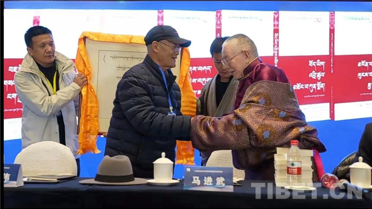 圖為與會(huì)嘉賓向馬進(jìn)武教授敬獻(xiàn)哈達(dá)
