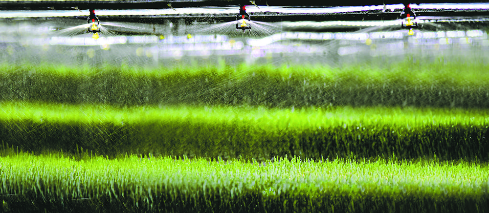 為種植架上的牧草進(jìn)行噴灌