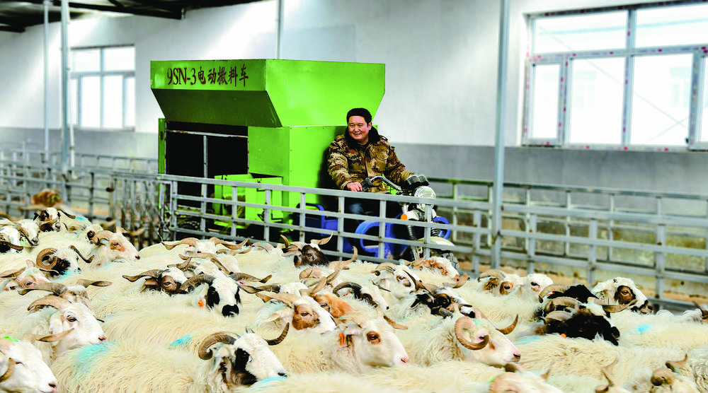 牧民給羊兒投喂“營(yíng)養(yǎng)餐”