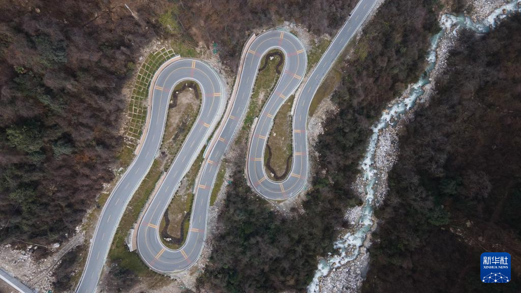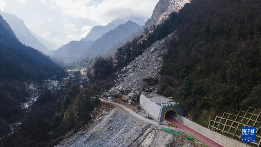 這是1月10日拍攝的海螺溝景區(qū)公路上一處新建的隧道(無人機照片)。景區(qū)重建時,避開地質災害點新建了4個隧道,抗災能力得到提升且縮短了通往景區(qū)的時間。新華社記者 胥冰潔 攝
