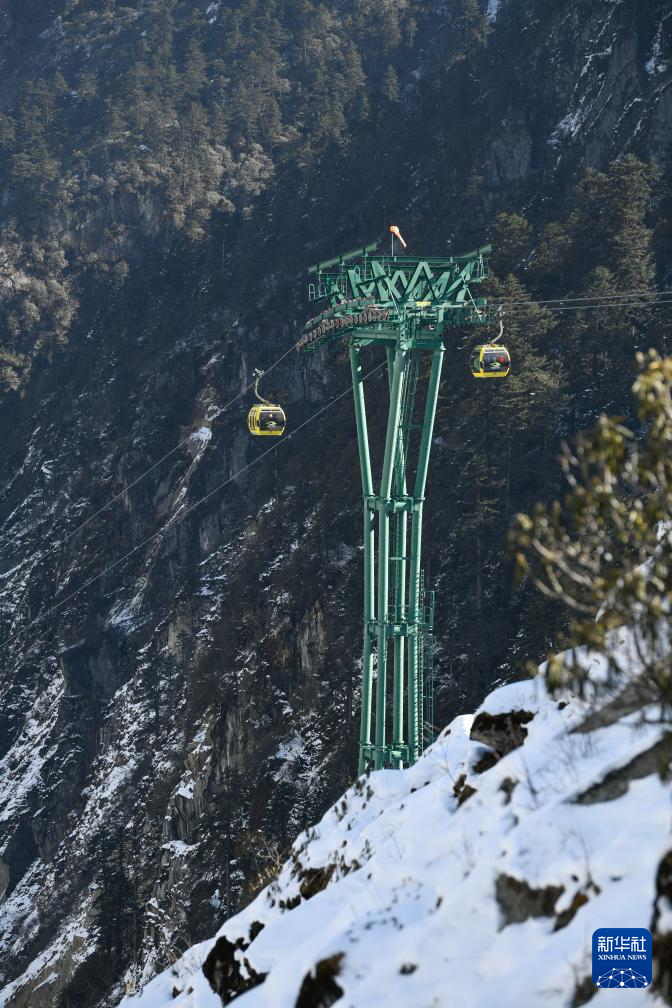 這是1月10日拍攝的海螺溝景區(qū)內運行的觀光纜車。新華社記者 胥冰潔 攝