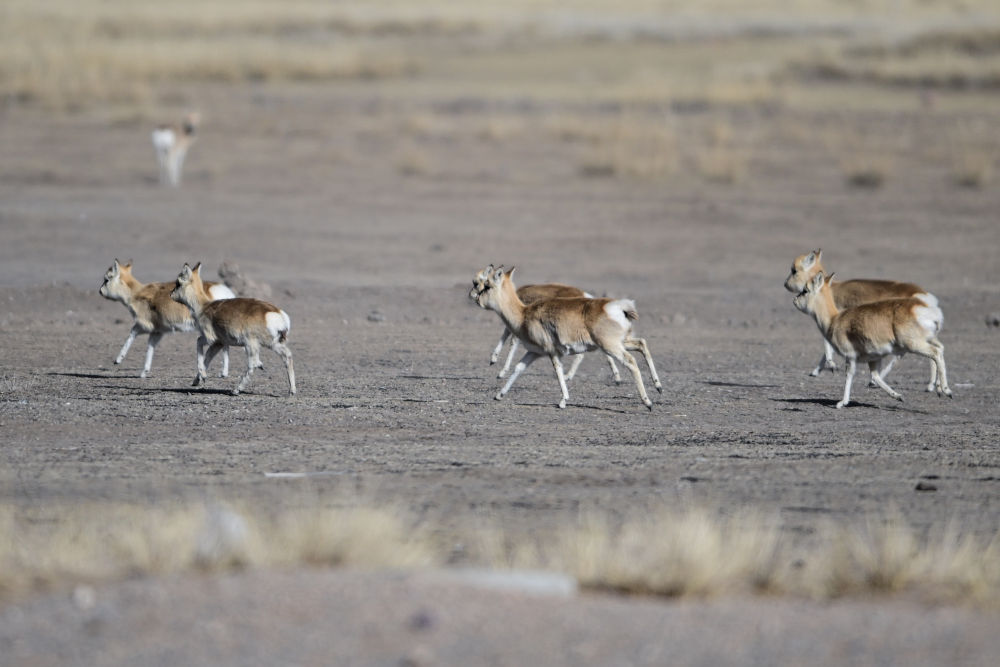隆冬時(shí)節(jié),在位于青海湖畔的青海省海北藏族自治州剛察縣哈爾蓋鎮(zhèn)境內(nèi)的草原上,成群的國家一級(jí)保護(hù)動(dòng)物——普氏原羚覓食棲息,成為冬日一道獨(dú)特的風(fēng)景。