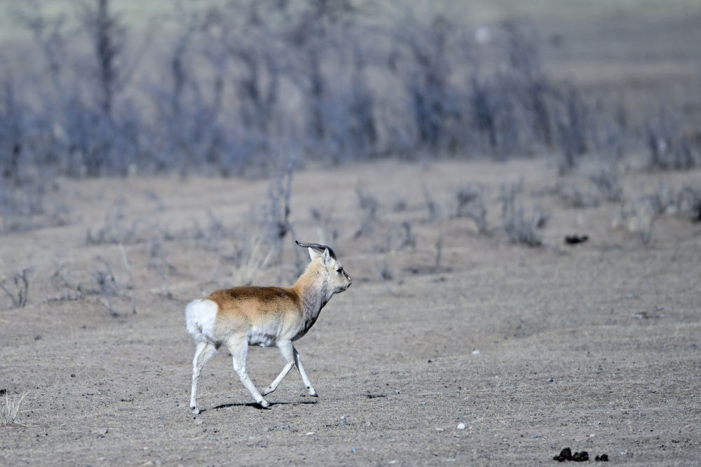 這是1月24日在青海省海北藏族自治州剛察縣哈爾蓋鎮(zhèn)境內(nèi)的草原上拍攝的普氏原羚。新華社記者 耿輝凰 攝